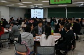 懇親会の様子です。先輩のお話に耳を傾けます。 |