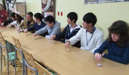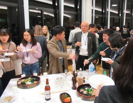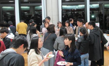 | 経済学部・経済学研究科に在籍する留学生と日本人学生の親交を深める交歓パーティーが開催されました。ECOCAは昨年に引き続き、司会進行とゲーム運営を担当しました。今年はコマづくり&コマ回し大会を行い、日本の文化に触れてもらいました。留学生の方にとっては慣れない作業でしたが、作ったコマがうまく回ると皆さん嬉しそうな表情を浮かべていました。またゲームは希望者参加型にしたため、ゆったりと食事や歓談をしたい人にも楽しんでもらえました。約150名の方に参加していただき、会場は談笑する声に包まれました。来年も参加者の方々により楽しんでいただけるように今年の経験を活かしていきたいと思います。 |