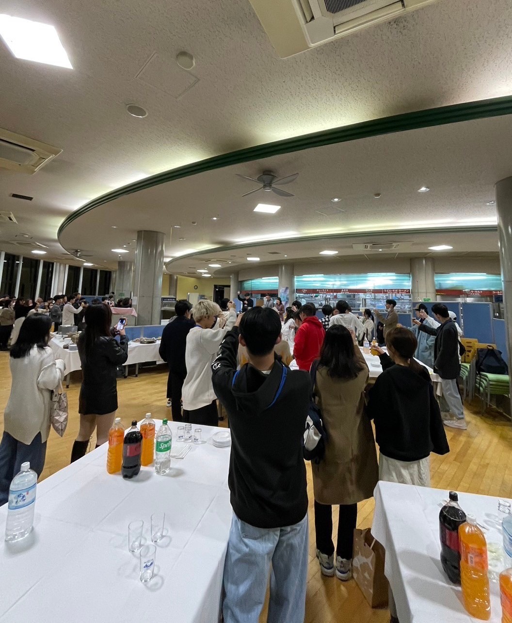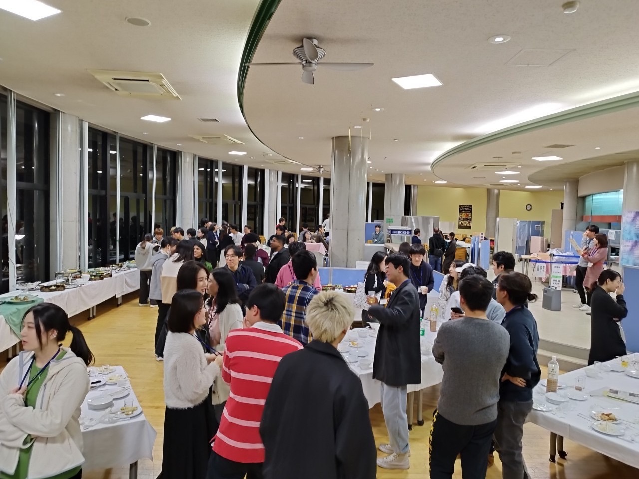 | 経済学部・経済学研究科に在籍する外国人留学生と日本人学生の親交を深める交歓パーティーが4年ぶりに開催されました。立食形式で、豪華な料理に囲まれながら食事や歓談を楽しみました。ECOCAは司会進行と習字体験の企画を担当しました。習字体験では、希望者を対象に「元気」という文字をお題として挑戦してもらいました。日本の伝統文化だと知ってはいるがやったことのない習字に、最初は苦戦していましたが、私たちと一緒に筆を動かすことで、楽しく体験してもらうことができました。また、作品を嬉しそうに持って会場を後にする留学生達の姿が印象的でした。日本人との交流や日本文化の体験が留学生にとってかけがいのない思い出となれば幸いです。 |