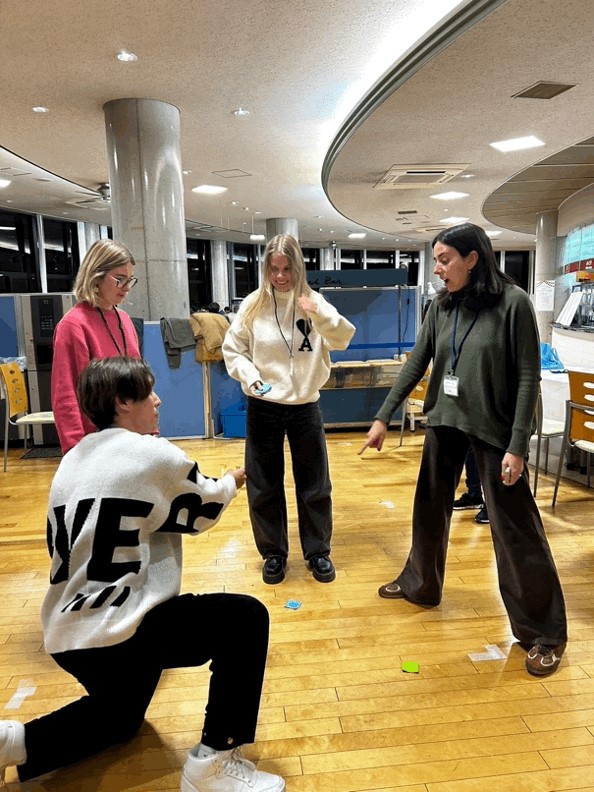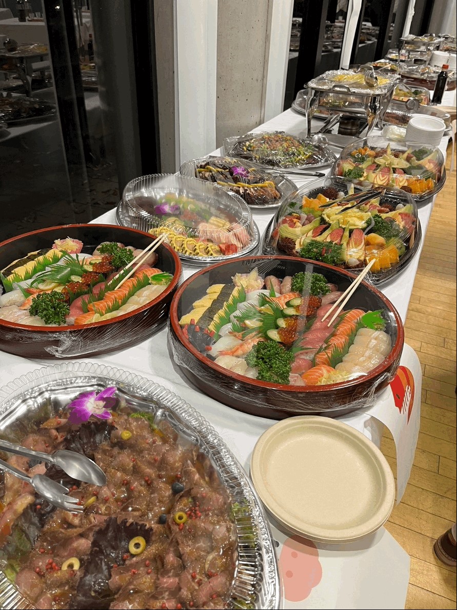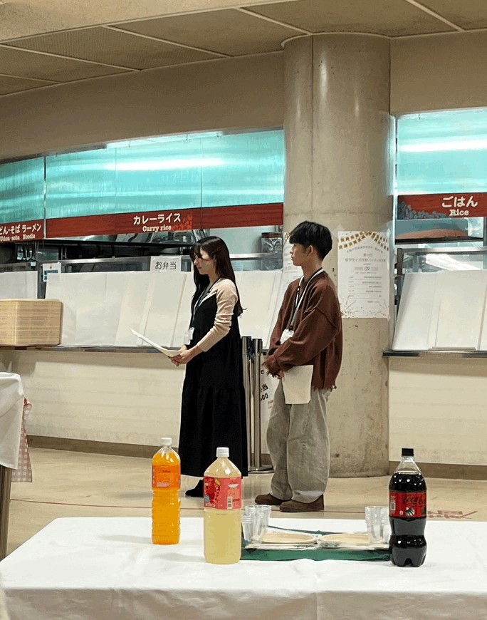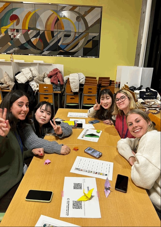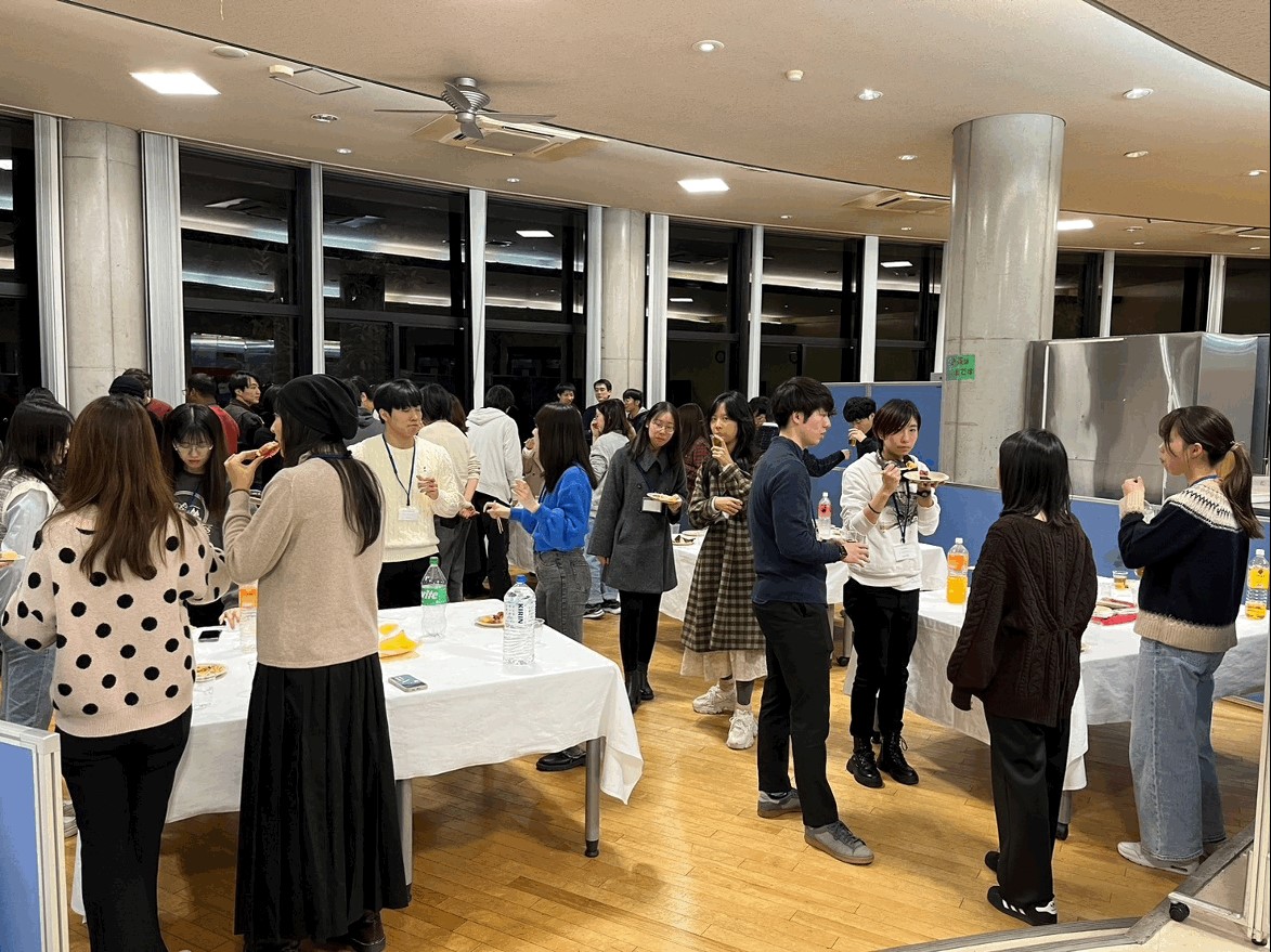 | 経済学部・経済学研究科に在籍する外国人留学生と日本学生の親睦を深める交歓パーティーが、昨年度に引き続き今年度も開催されました。様々な国の料理から寿司などの日本料理まで幅広いジャンルの豪華な食事を楽しみながら、参加者同士交流を深めていました。ECOCAは司会進行と日本文化体験ブースの企画を担当しました。めんこは参加者同士が対戦するバトルゲームであり、特に盛り上がりを見せていました。折り紙は海外でも知られる代表的な日本文化であることに加え、自分で折った作品を記念に持ち帰れる点で人気でした。福笑いはルールが簡単で分かりやすいので、何を体験するか迷っている方にも楽しんでいただけました。どの体験をした方も嬉しそうに会場を後にされていて、この日本文化体験を企画してよかったと心から思うとともに、参加者皆さまにとって今回のイベントがかけがえのない思い出となっていれば幸いです。 |